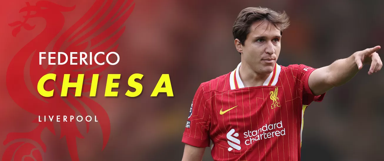 In 2024, Chiesa moved to England, signing for Premier League club Liverpool.On 29 August 2024, Chiesa moved to the Premier League with Liverpool on a long-term deal. Chiesa provided his first assist in an EFL Cup match against West Ham on 25 September to Diogo Jota.
